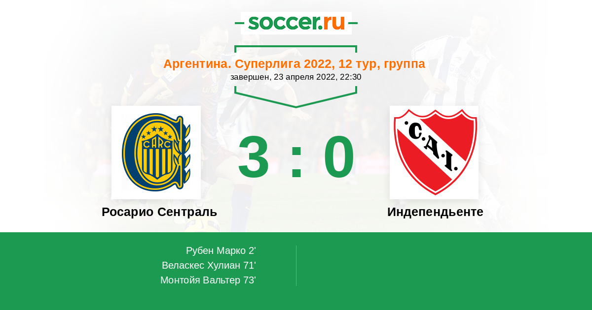 Протокол матча Росарио Сентраль против Индепендьенте