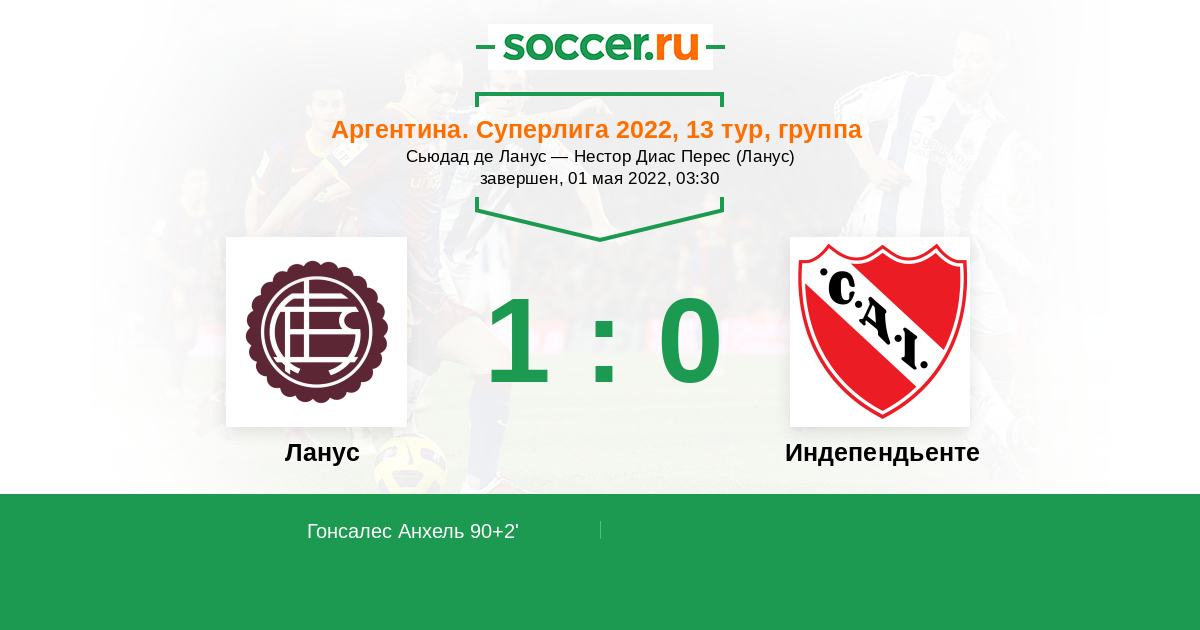 Гол90+2' (1:0) Гонсалес Анхель (27) (Леонель Ди Пласидо (26))