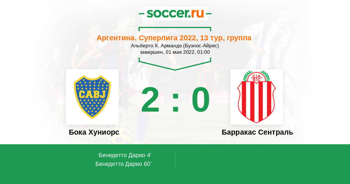 Протокол матча Бока Хуниорс против Барракас Сентраль