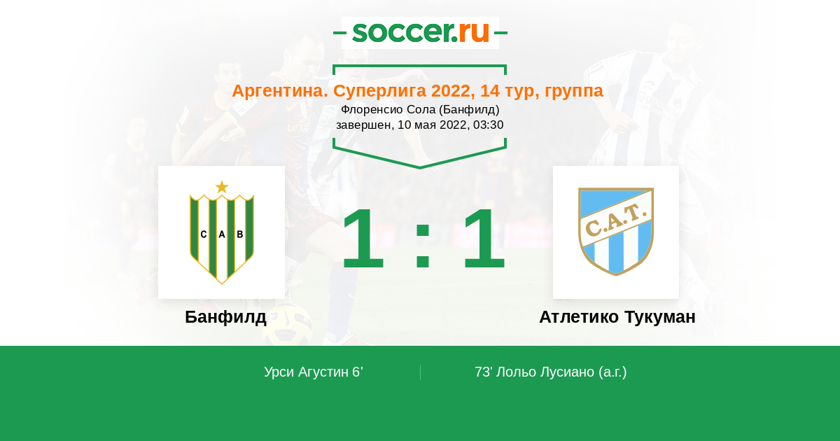 Протокол матча Банфилд против Атлетико Тукуман