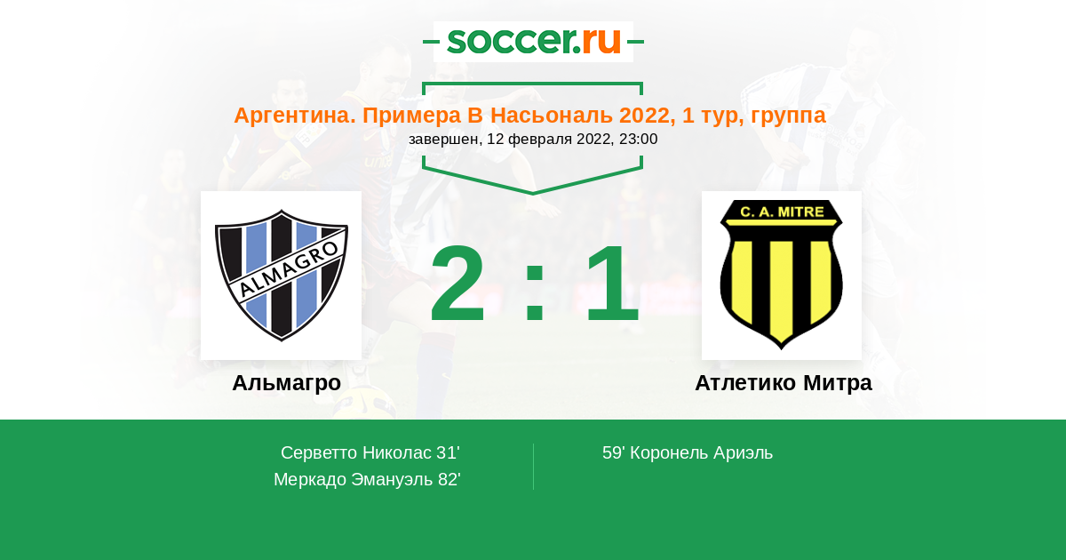 Протокол матча Альмагро против Атлетико Митра