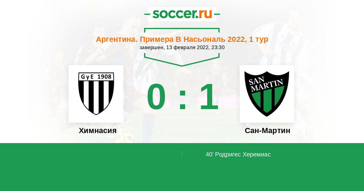 Протокол матча Химнасия против Сан-Мартин