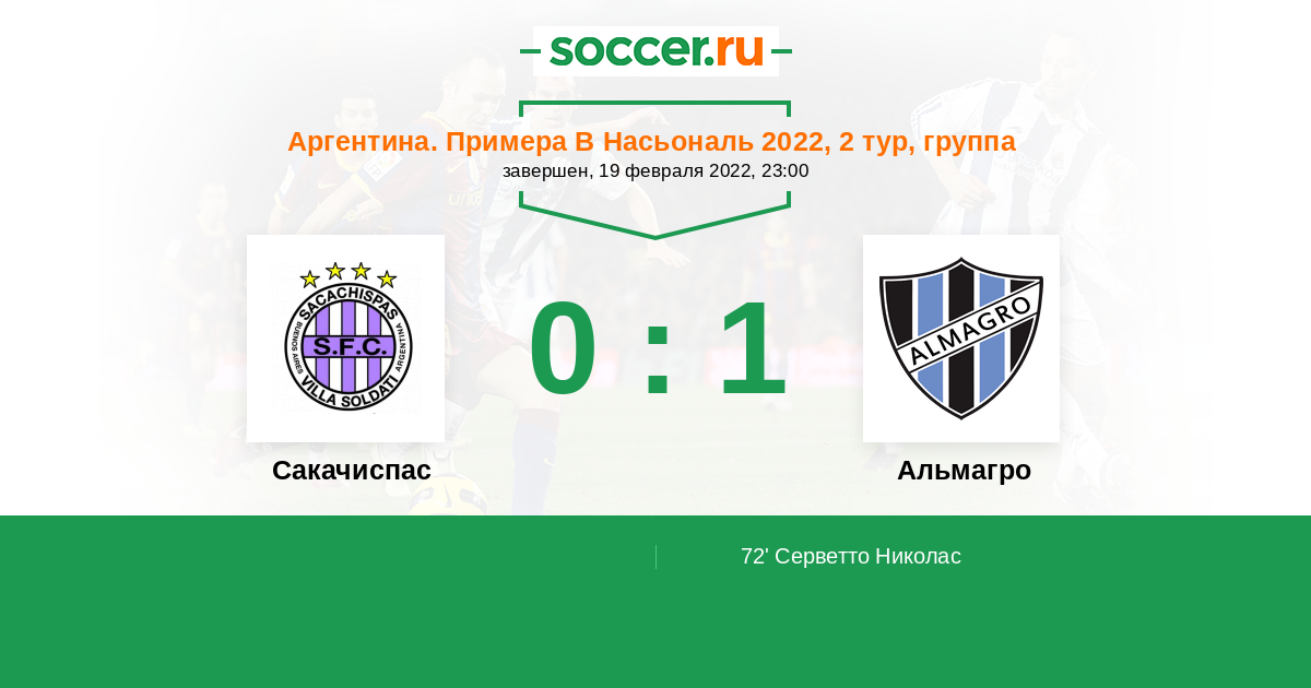 72' (0:1) Серветто Николас