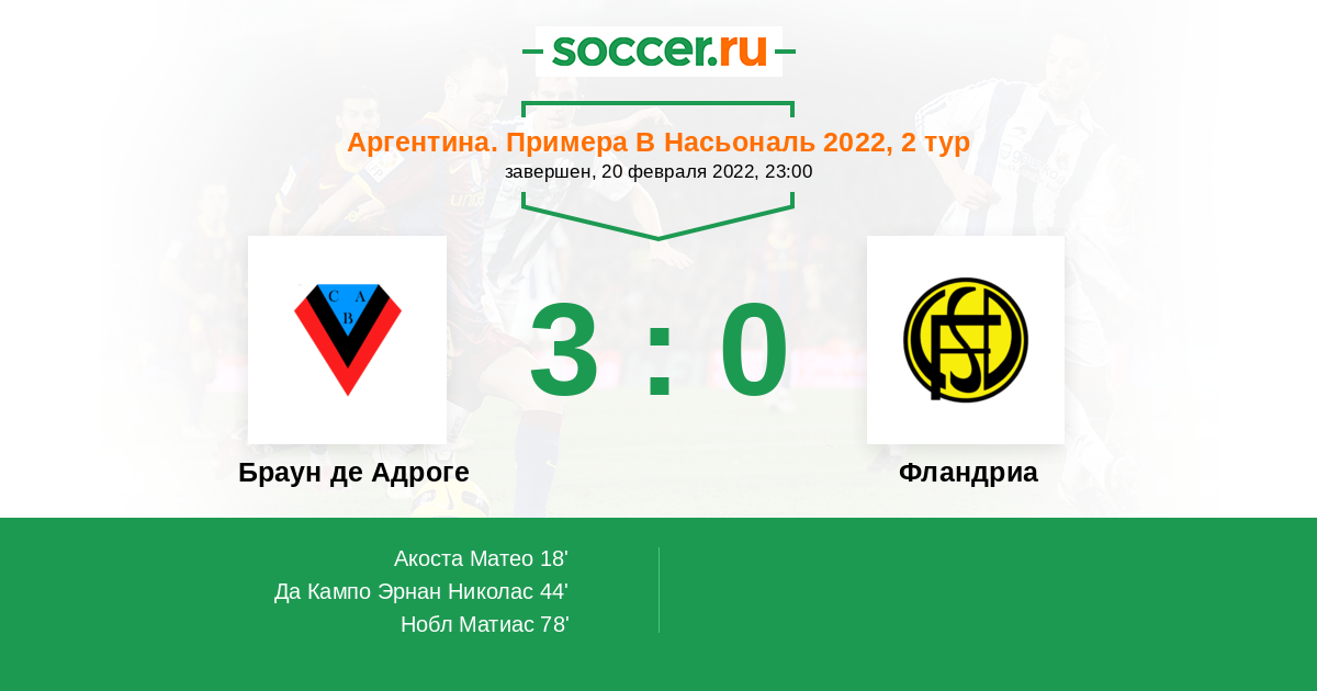 Протокол матча Браун де Адроге против Фландриа