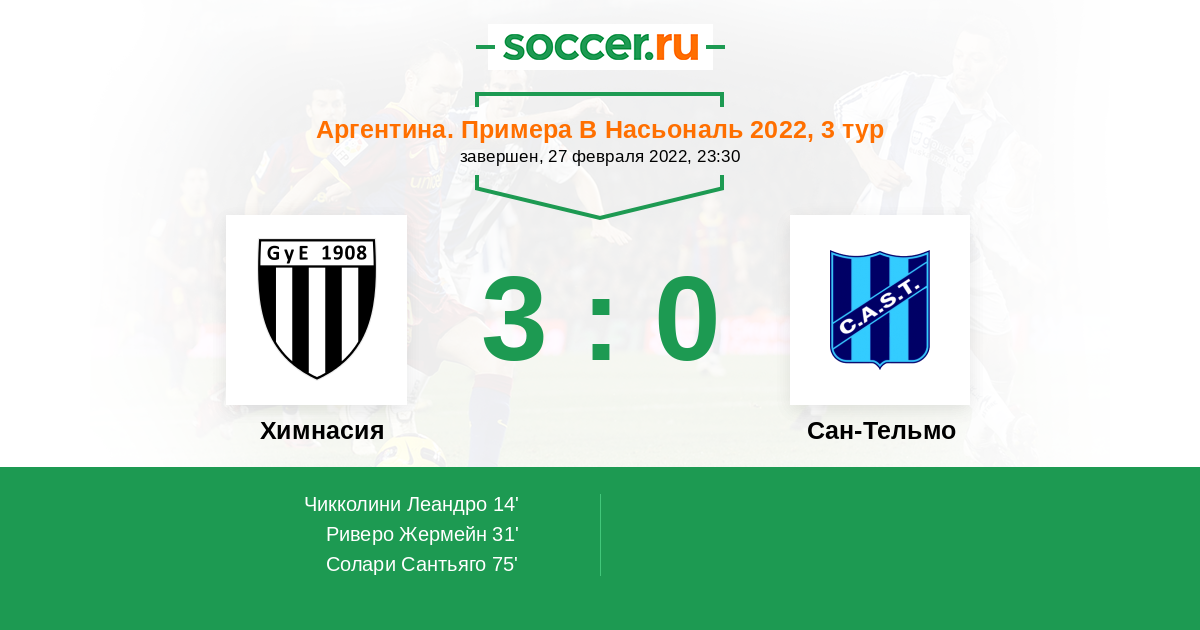 Протокол матча Химнасия против Сан-Тельмо