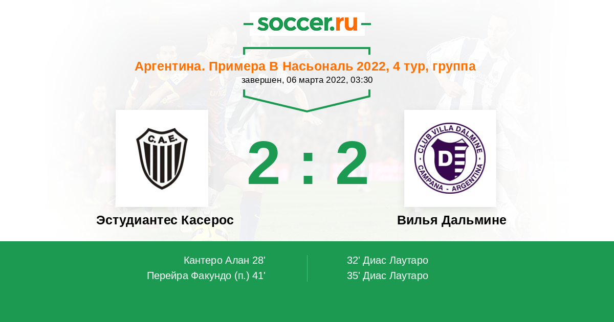 Протокол матча Эстудиантес Касерос против Вилья Дальмине