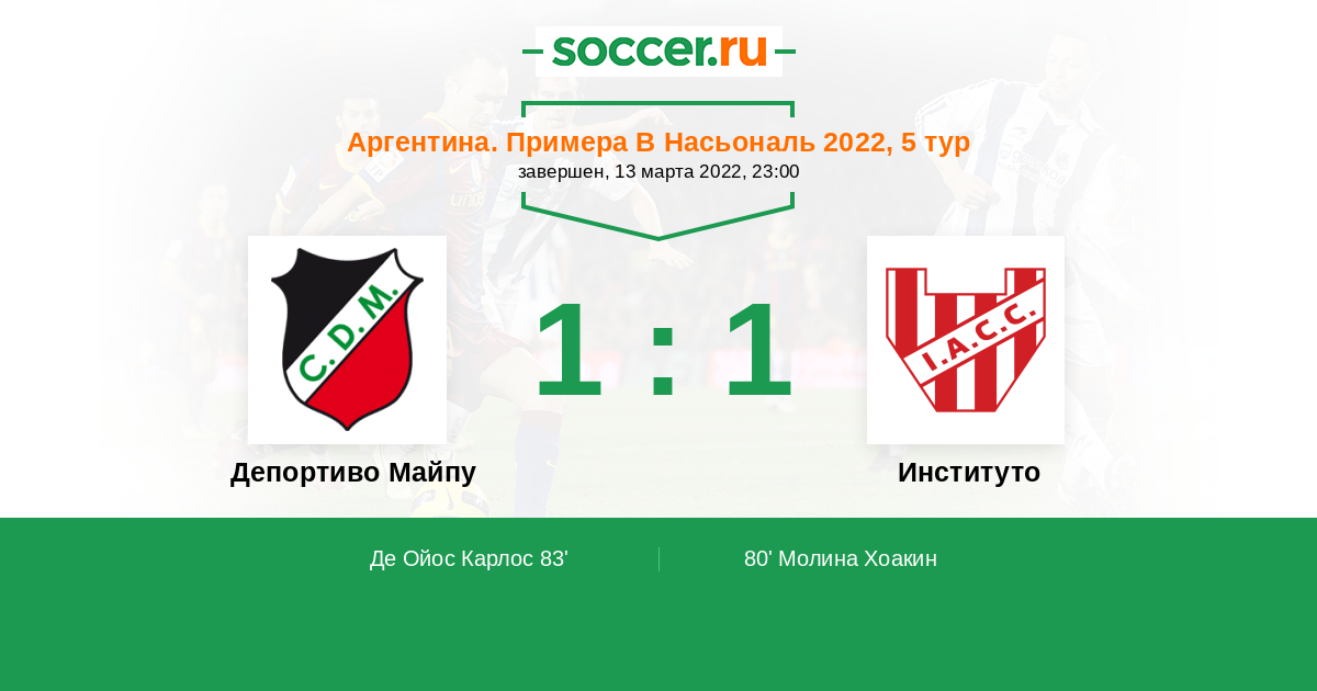 Протокол матча Депортиво Майпу против Институто