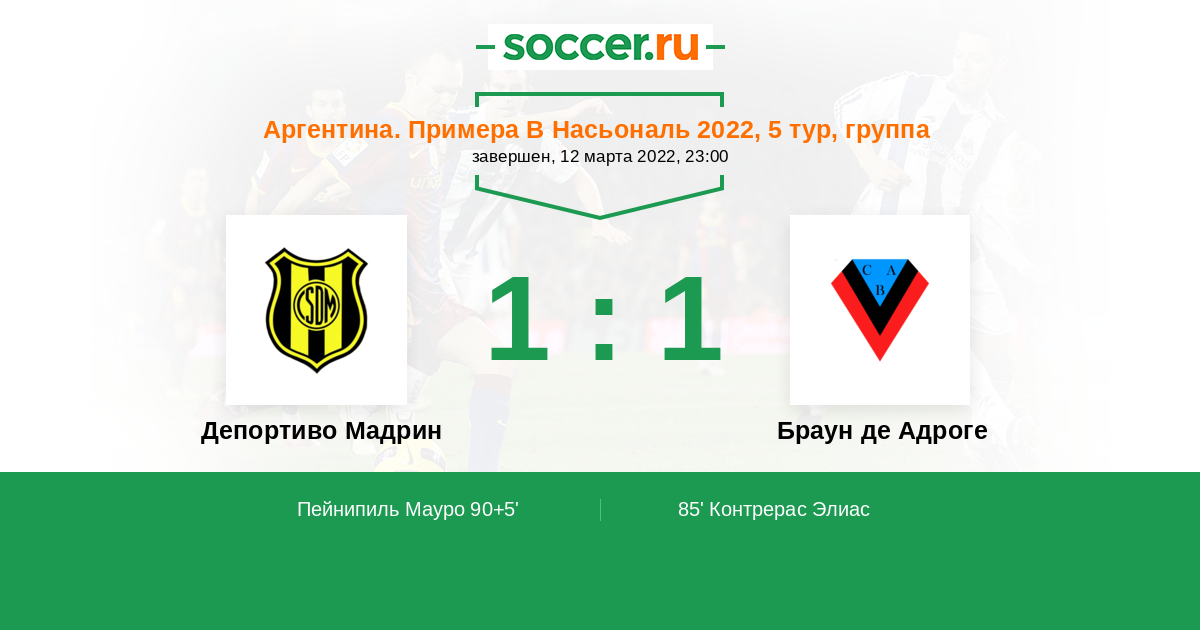 Протокол матча Депортиво Мадрин против Браун де Адроге