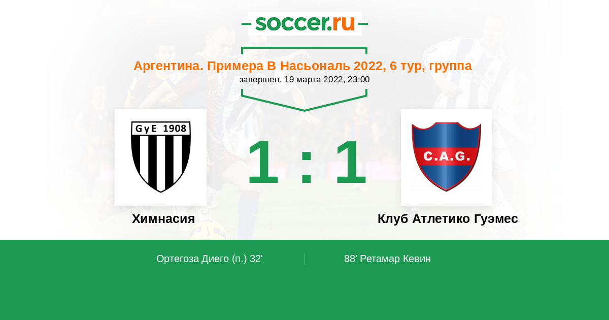 Протокол матча Химнасия против Атлетико Гуэмес