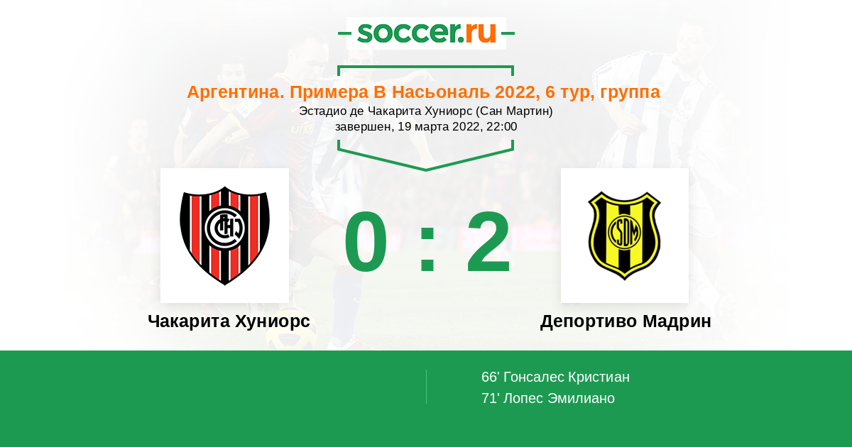 Протокол матча Чакарита Хуниорс против Депортиво Мадрин