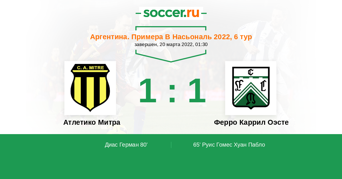Протокол матча Атлетико Митра против Ферро Каррил Оэсте