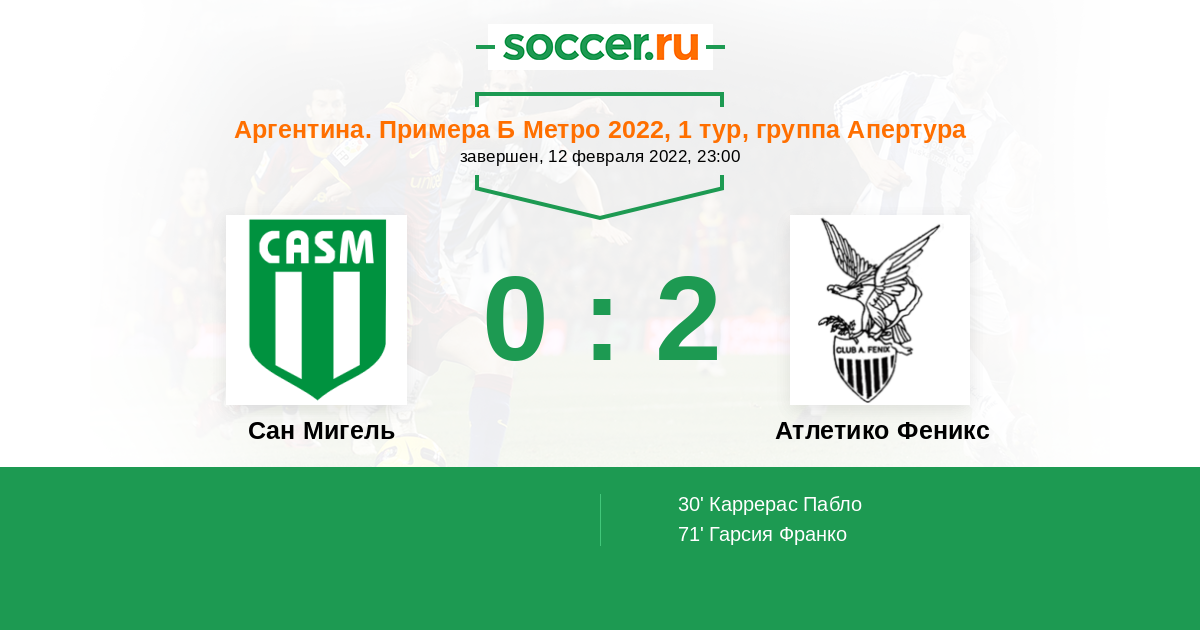 Протокол матча Сан Мигель против Атлетико Феникс