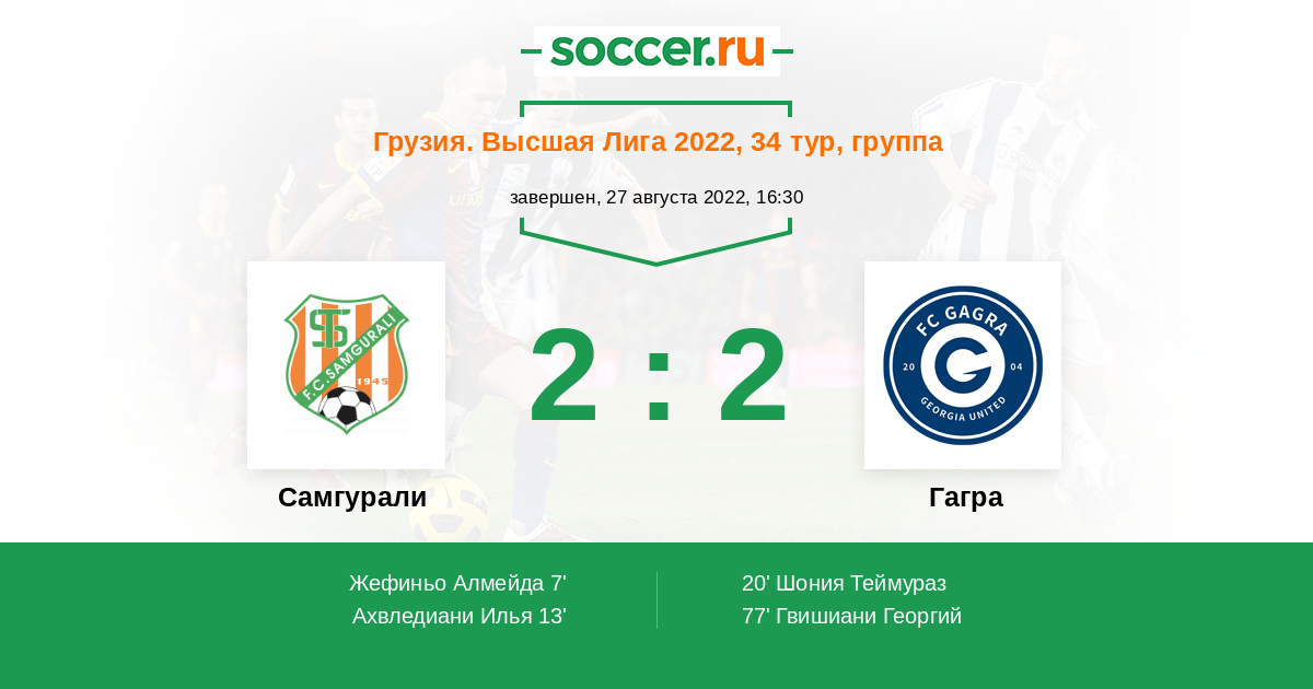 Протокол матча Самгурали против Гагра