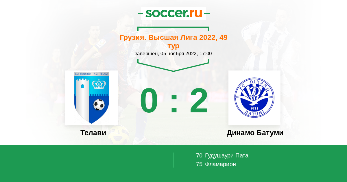 Протокол матча Телави против Динамо Батуми