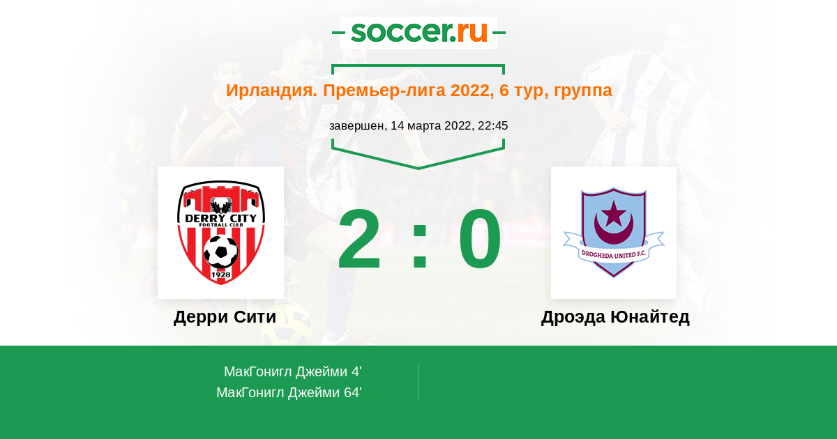 Протокол матча Дерри Сити против Дроэда Юнайтед