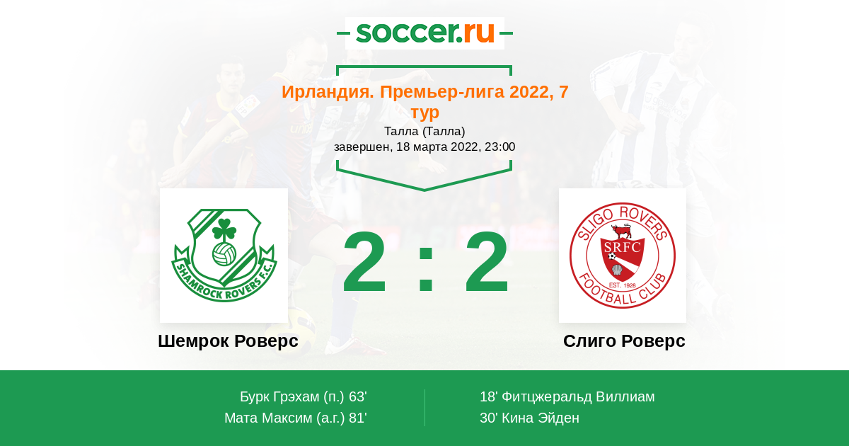 Протокол матча Шемрок Роверс против Слиго Роверс
