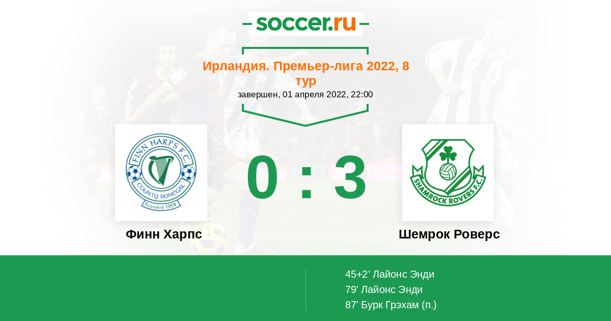 Протокол матча Финн Харпс против Шемрок Роверс