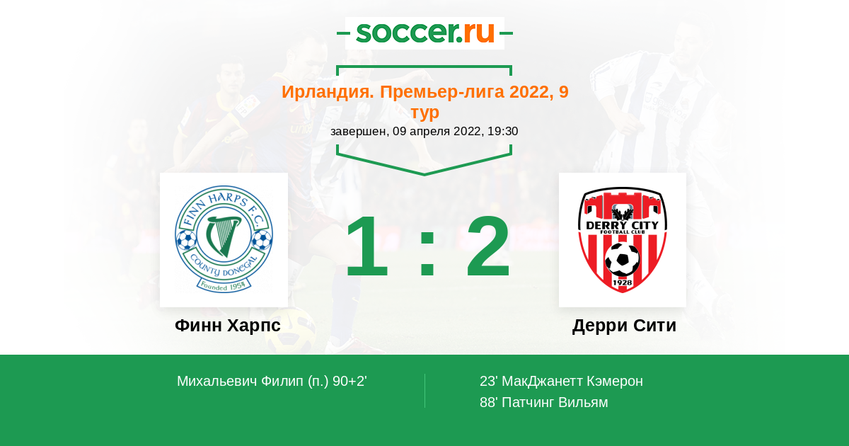 Протокол матча Финн Харпс против Дерри Сити