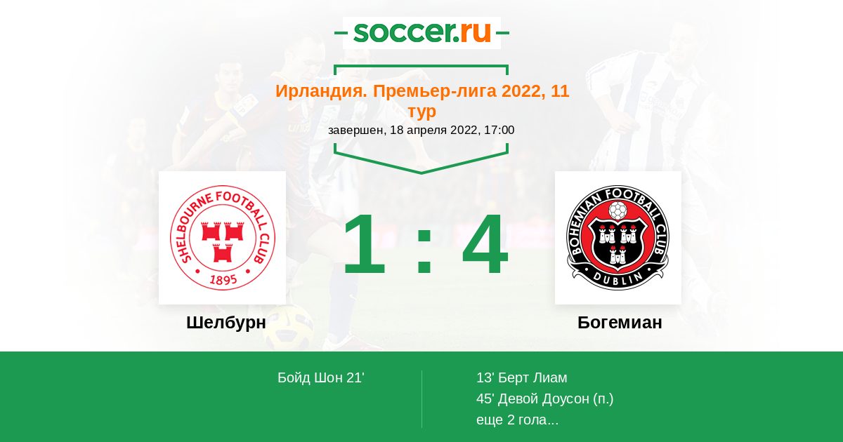 Протокол матча Шелбурн против Богемиан