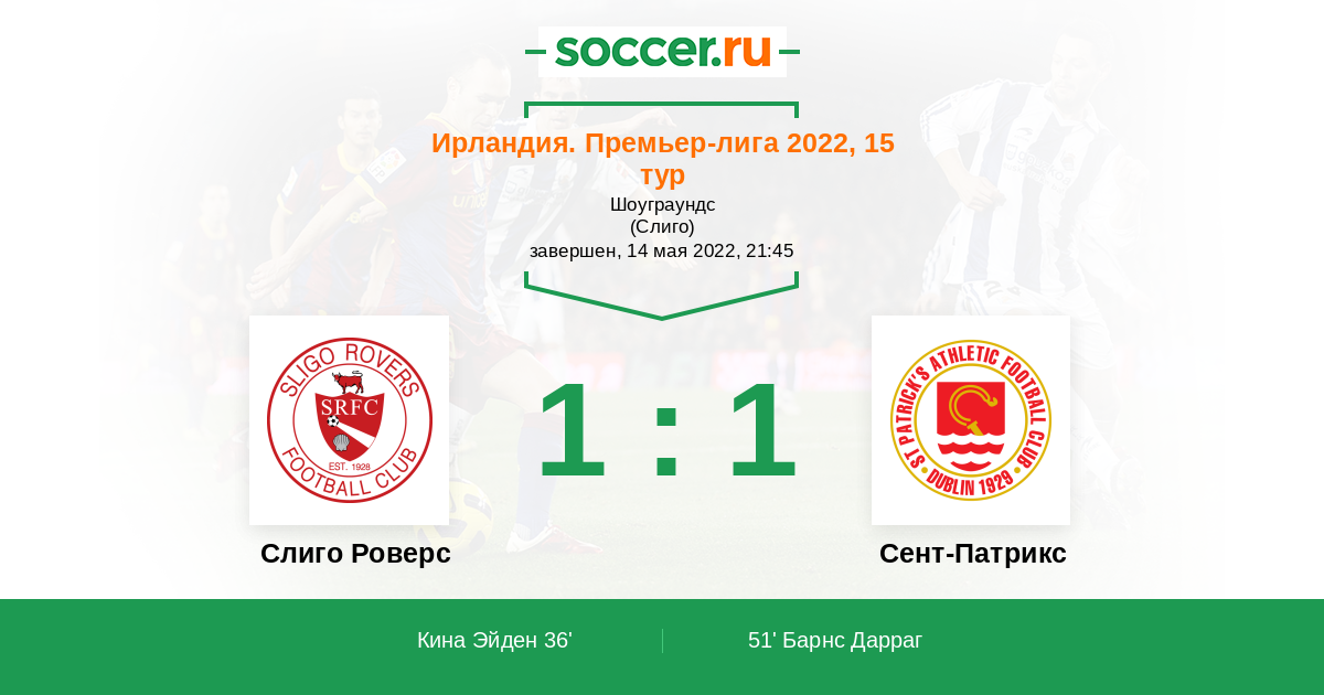Протокол матча Слиго Роверс против Сент-Патрикс