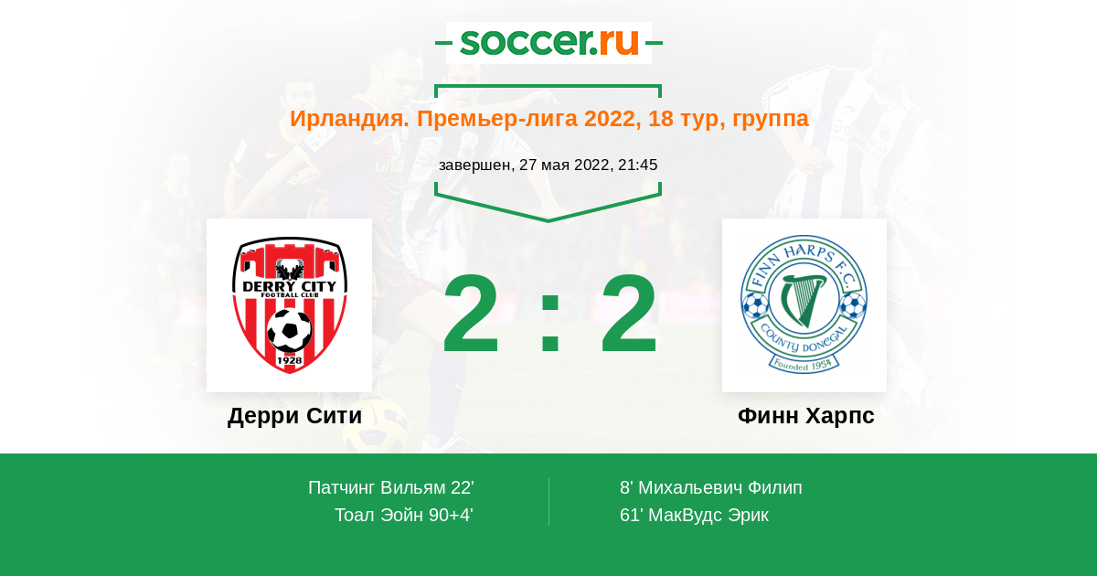 Протокол матча Дерри Сити против Финн Харпс