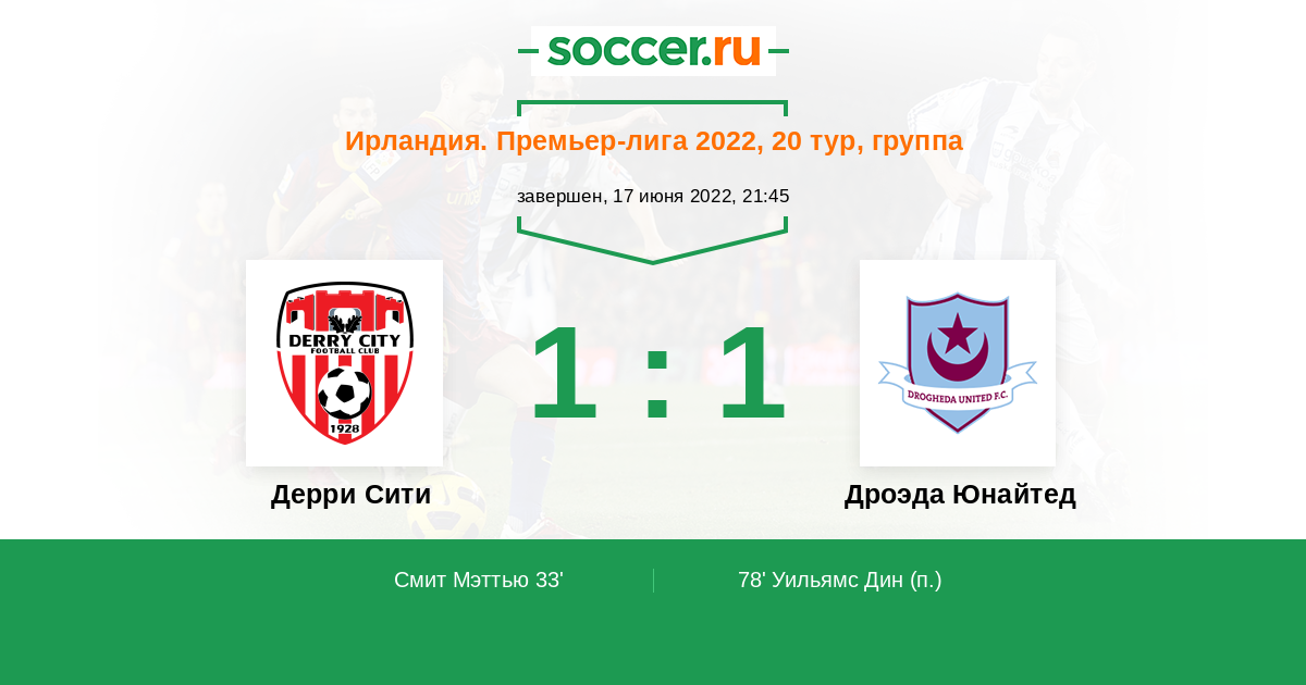 Протокол матча Дерри Сити против Дроэда Юнайтед
