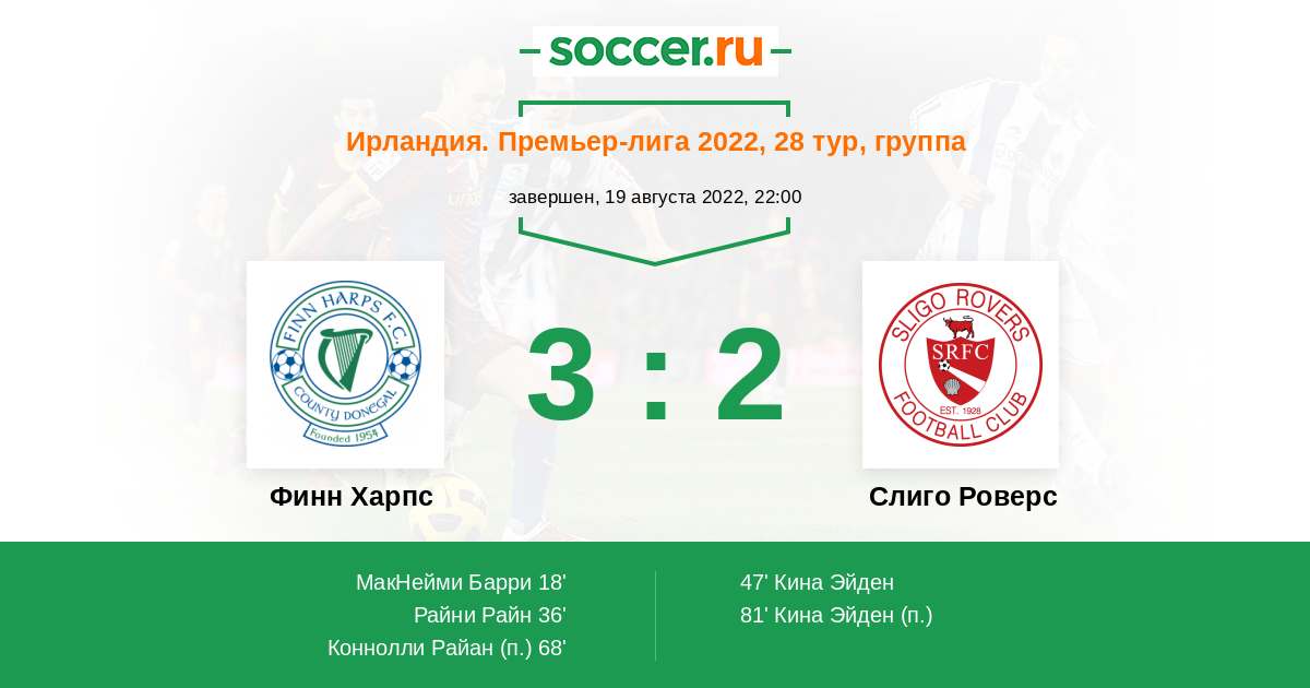 Протокол матча Финн Харпс против Слиго Роверс