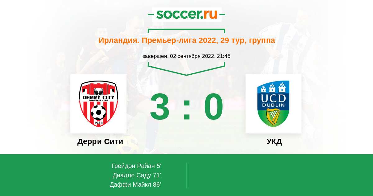 Протокол матча Дерри Сити против УКД