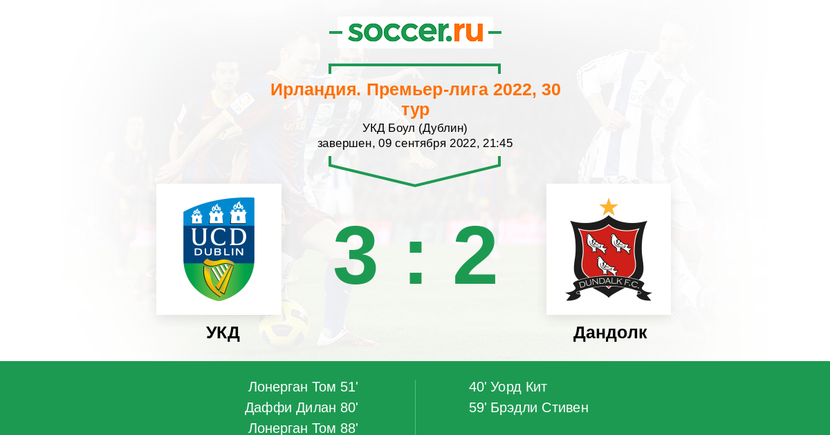 Протокол матча УКД против Дандолк