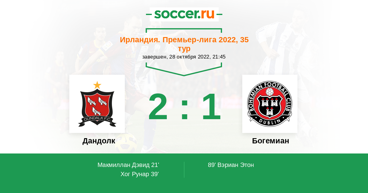Протокол матча Дандолк против Богемиан