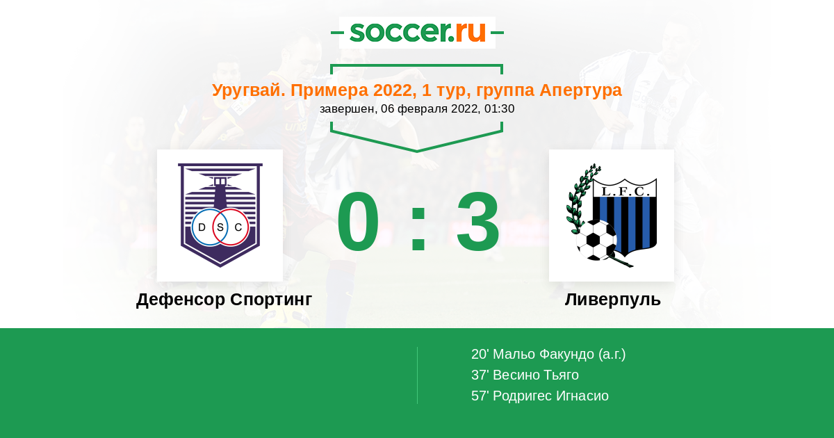 Протокол матча Дефенсор Спортинг против Ливерпуль