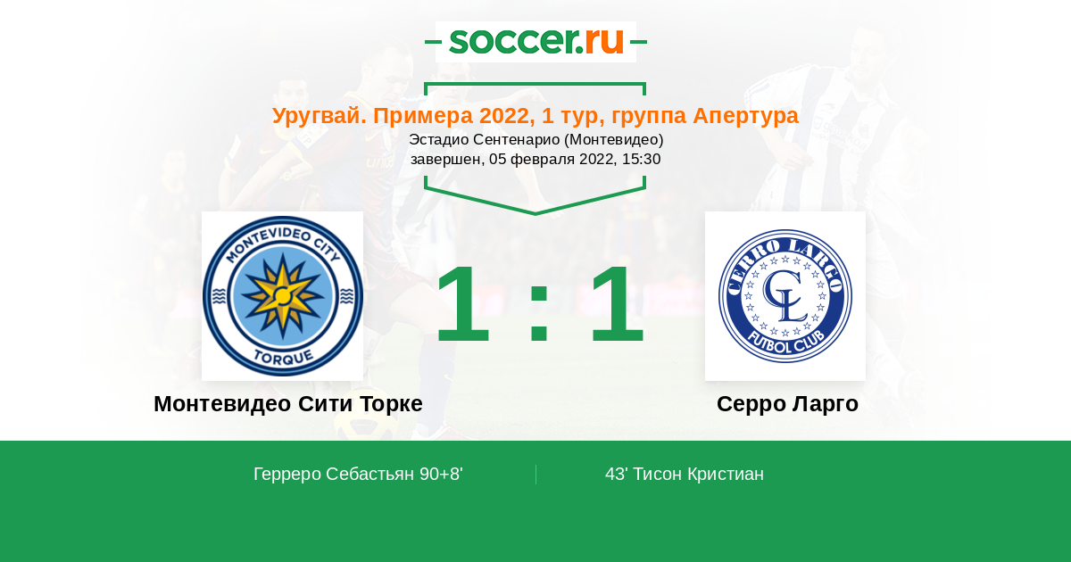 Протокол матча Монтевидео Сити Торке против Серро Ларго