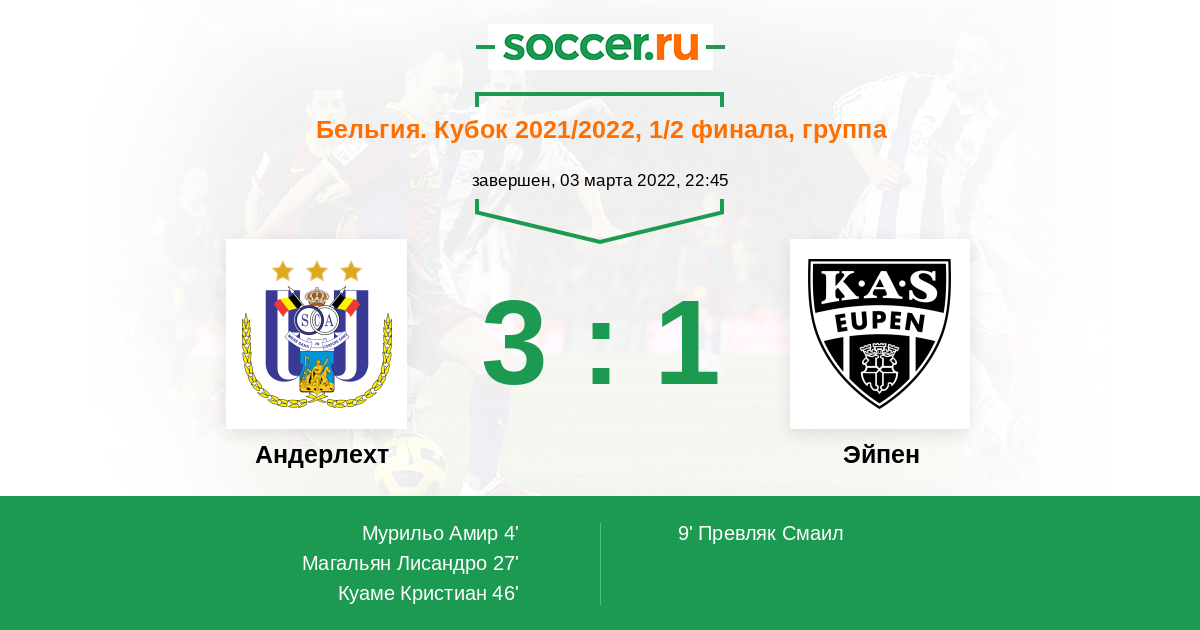 Протокол матча Андерлехт против Эйпен