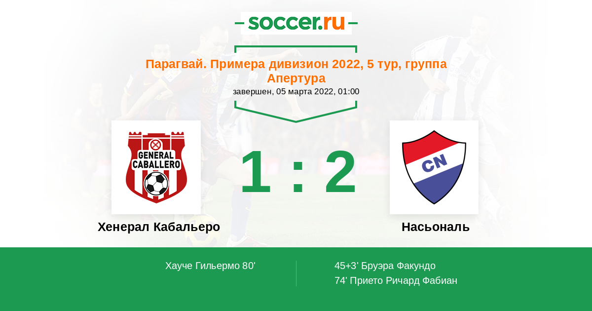 Протокол матча Хенерал Кабальеро против Насьональ