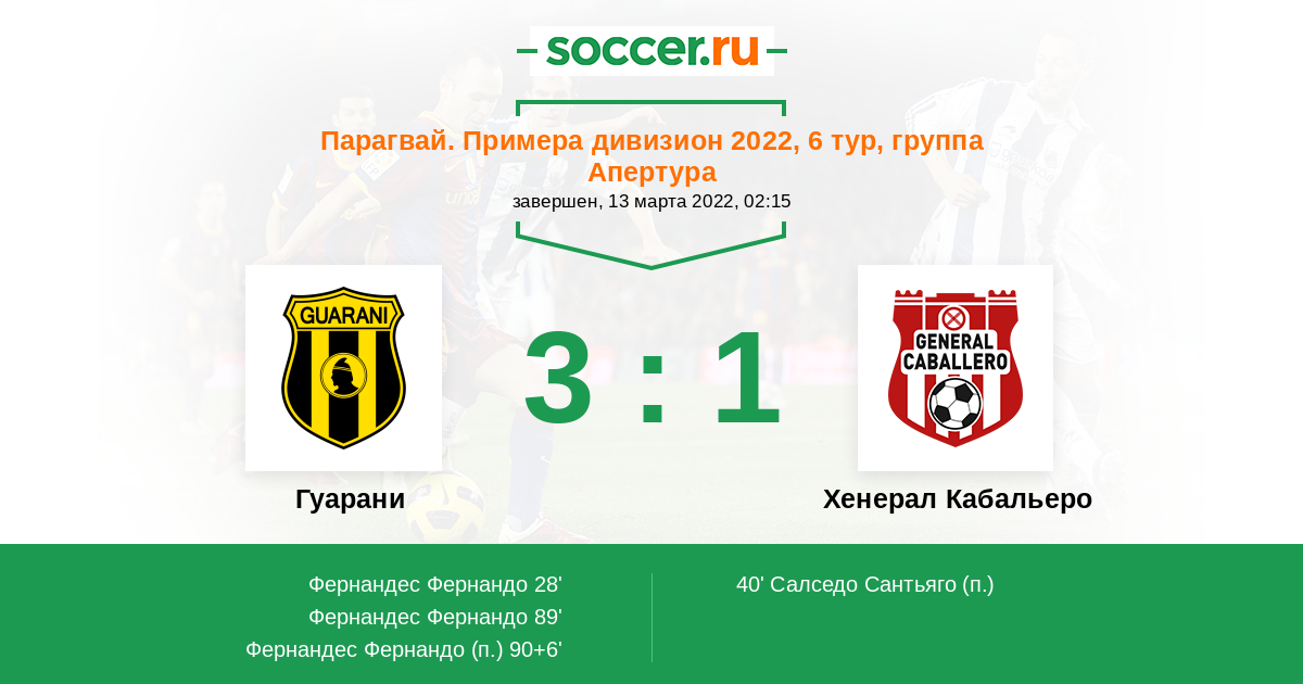 Протокол матча Гуарани против Хенерал Кабальеро