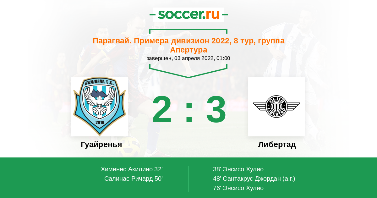 32' (1:0) Хименес Акилино (2) (Салинас Ричард (23))