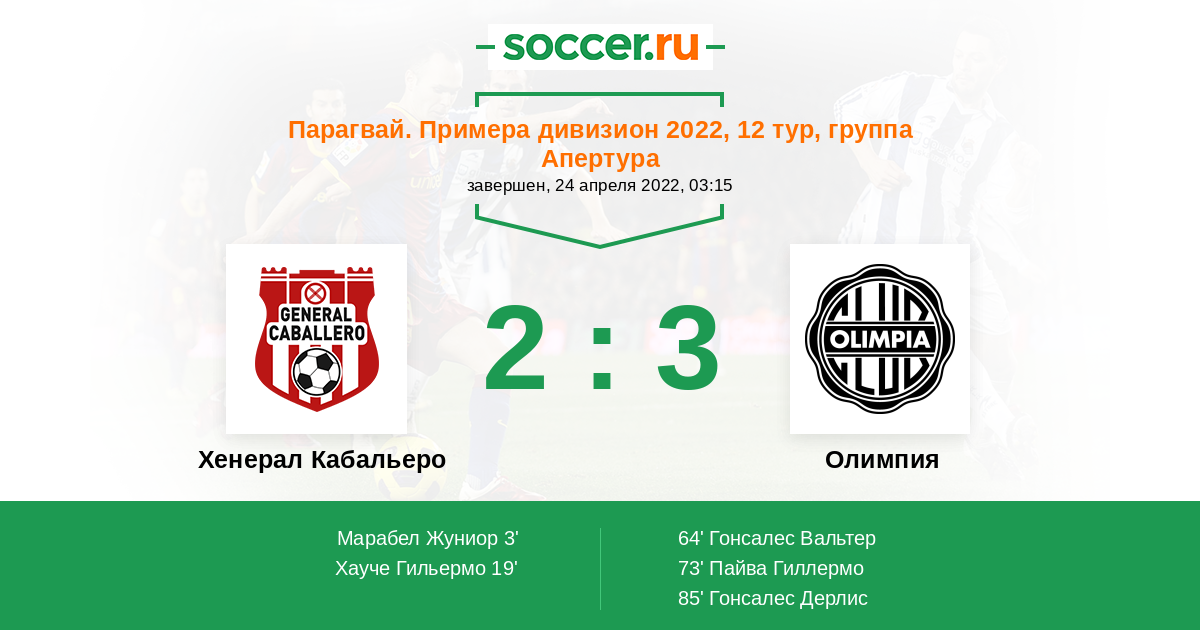Протокол матча Хенерал Кабальеро против Олимпия