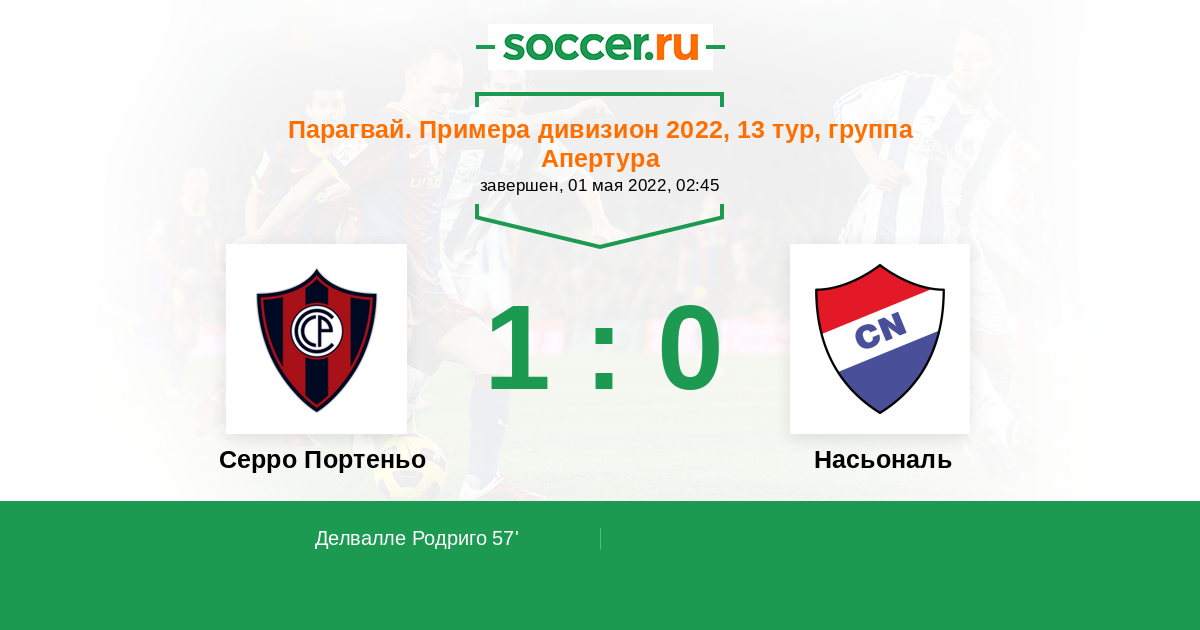 Протокол матча Серро Портеньо против Насьональ
