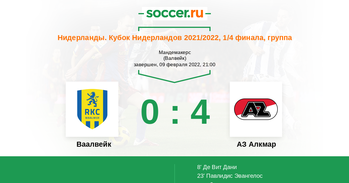 Протокол матча Ваалвейк против АЗ Алкмар