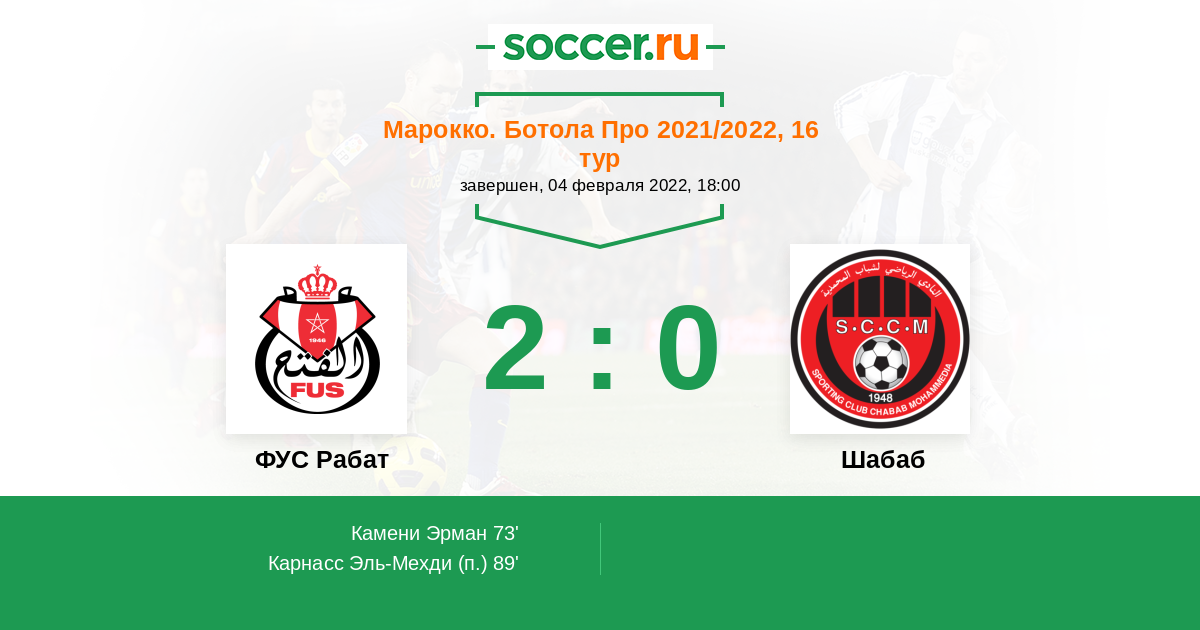 Протокол матча ФУС Рабат против Шабаб
