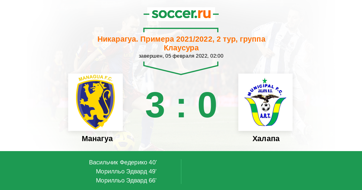 Протокол матча Манагуа против Халапа