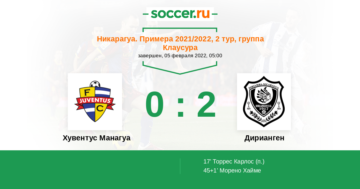 Протокол матча Хувентус Манагуа против Дирианген