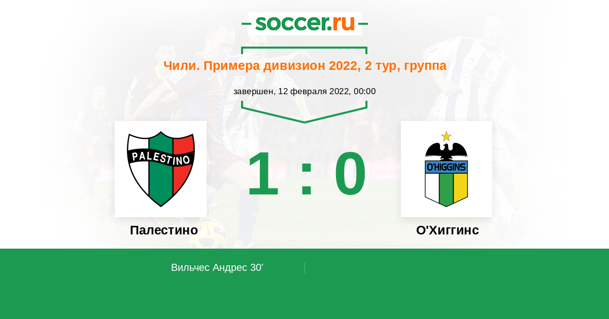 Протокол матча Палестино против О'Хиггинс