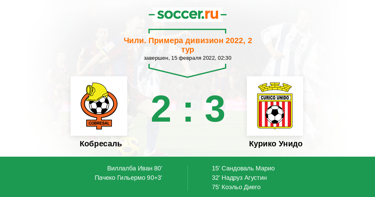 Протокол матча Кобресаль против Курико Унидо