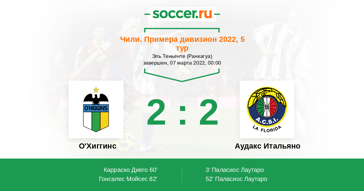 Протокол матча О'Хиггинс против Аудакс Итальяно