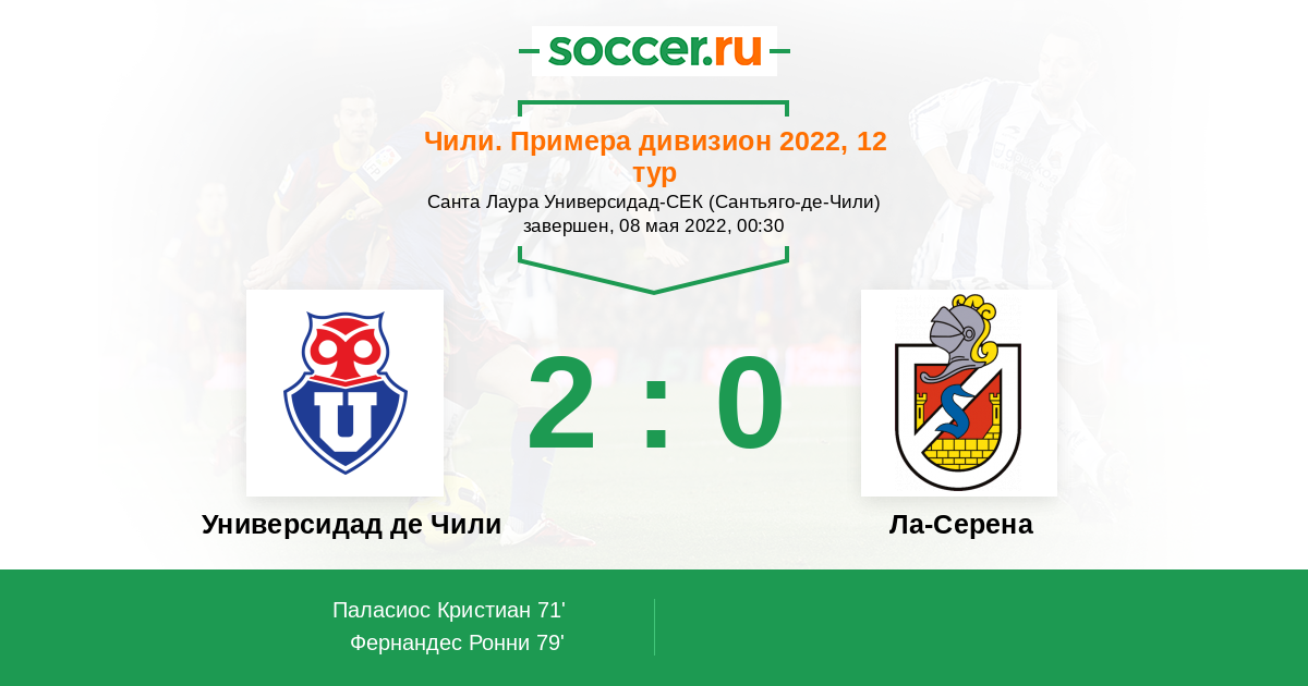 71' (1:0) Паласиос Кристиан (11) (Поблет Исраэль (28))
