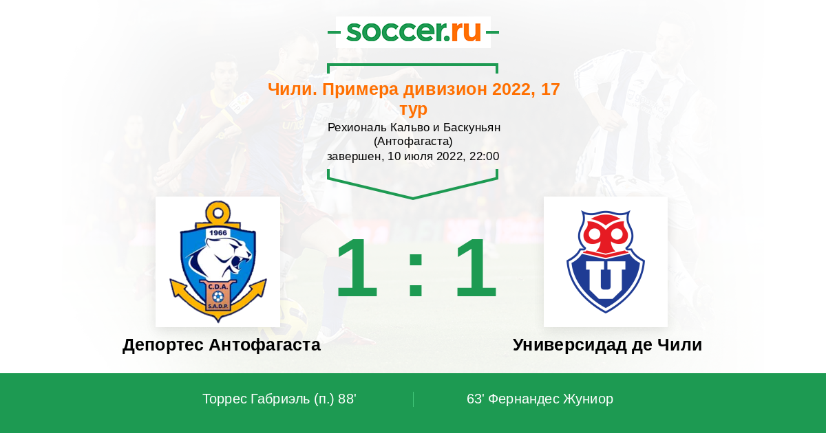 Протокол матча Депортес Антофагаста против Универсидад де Чили