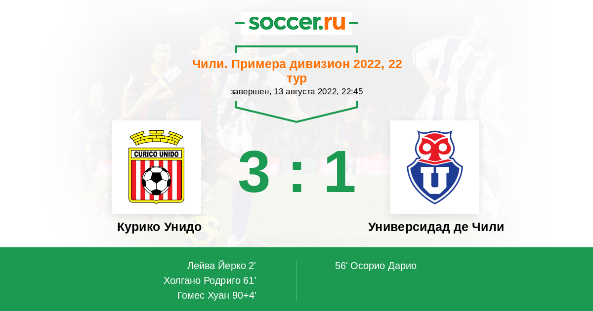 Протокол матча Курико Унидо против Универсидад де Чили