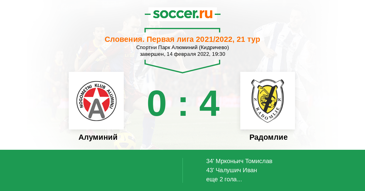 Протокол матча Алуминий против Радомлие