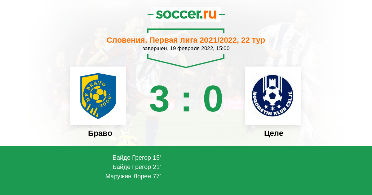 Протокол матча Браво против Целе